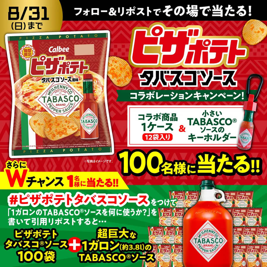 TABASCO®ソースとピザポテトの初コラボレーションを記念して、カルビーPR部公式Xアカウント(@calbee_PR)上で、商品やオリジナ